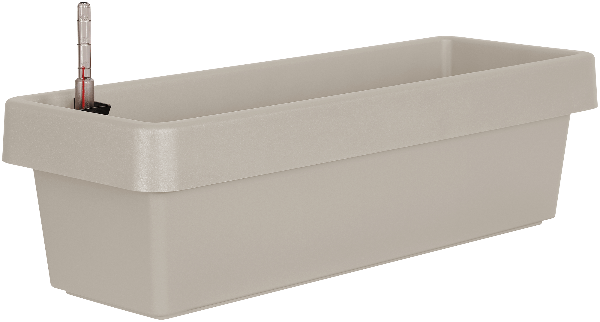This is the newest addition to our flower box range. It has an exclusive design that makes its own understated statement. The distinctive rim is elegant yet practical because it makes the flower box more stable. And there’s another special design touch at the bottom. The hidden offset edge creates a shadow gap so it looks like the flower box is floating.