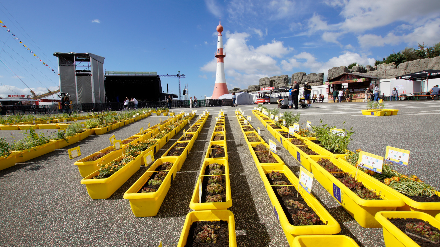 Trotz anfänglichem „Schietwetter“ verwandelte sich der graue Sonntagmorgen in einen strahlenden Kunsttag. Mit Unterstützung zahlreicher Helferinnen und Helfer entstand innerhalb weniger Stunden ein leuchtend gelbes Segelschiff aus 246 Beedabei-Kästen, bepflanzt mit trockenresistenten Wildstauden. Die eindrucksvolle Kulisse eines Dreimasters im Hintergrund verlieh dem Kunstwerk zusätzliche Symbolkraft.