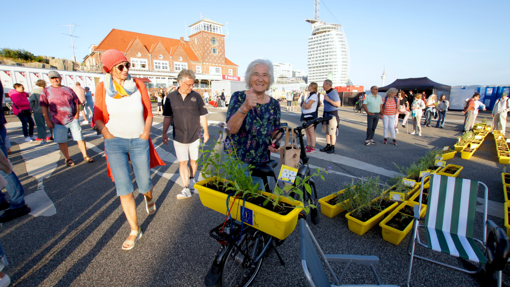 Nach der offiziellen Eröffnung wurden die bepflanzten Kästen kostenlos an Bürgerinnen und Bürger verteilt – viele davon wurden direkt per Fahrrad oder Lastenrad in ihre neuen Heimatgärten gebracht. So entstanden schon am selben Tag neue kleine Bienenfutterstellen in der ganzen Stadt.